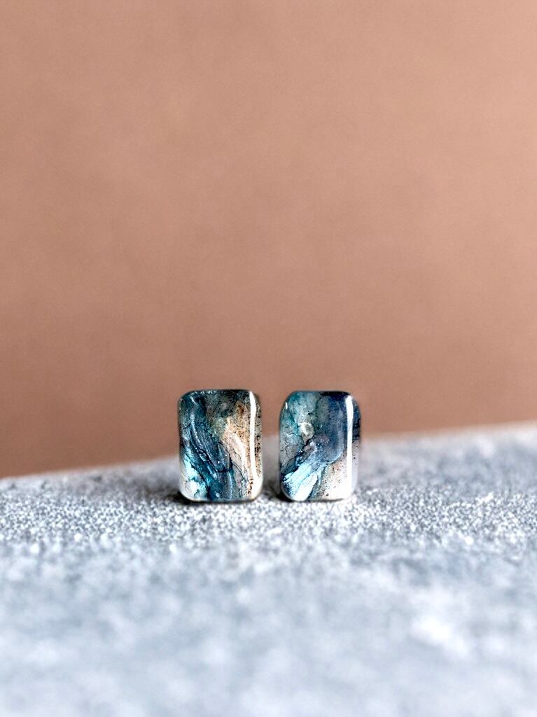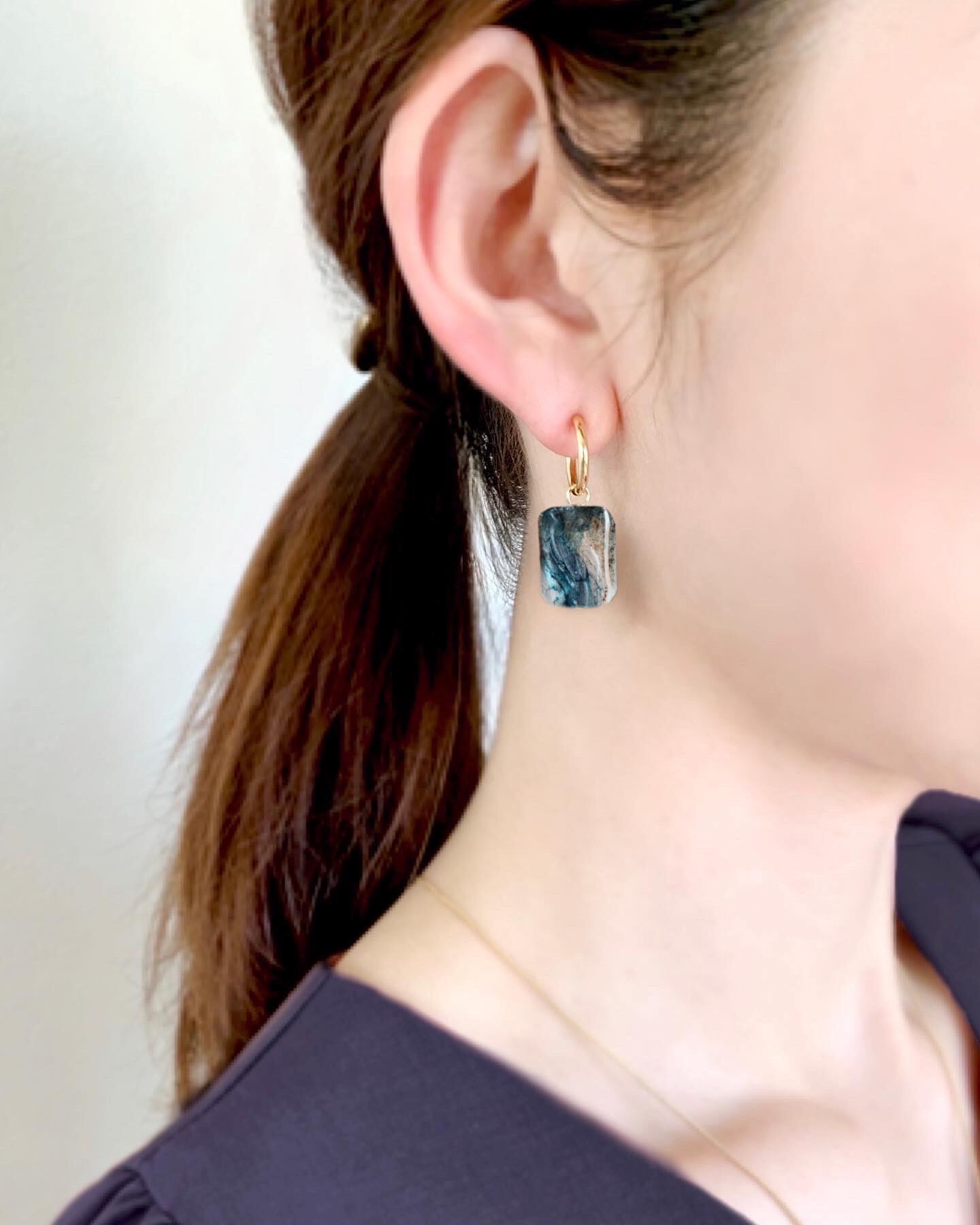 セレンディピティから、『 Dark 』アルコールインクアートアクセサリーが登場!メインカラーは深いネイビー。アルコールインクアートで描いたニュアンス模様に、砂を織り混ぜたことで、ほんのりとした錆感が生まれています。