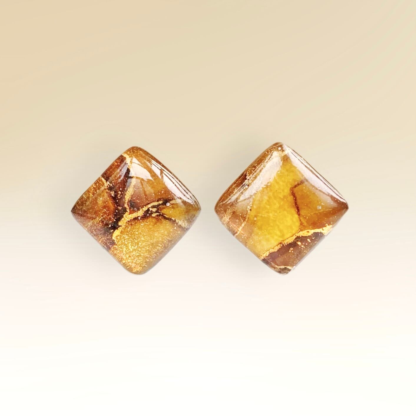 キャメル×ブラウン×マスタードベージュの美しい色合いが際立つ、アルコールインクアートアクセサリー『キャメリックブラウン』。
