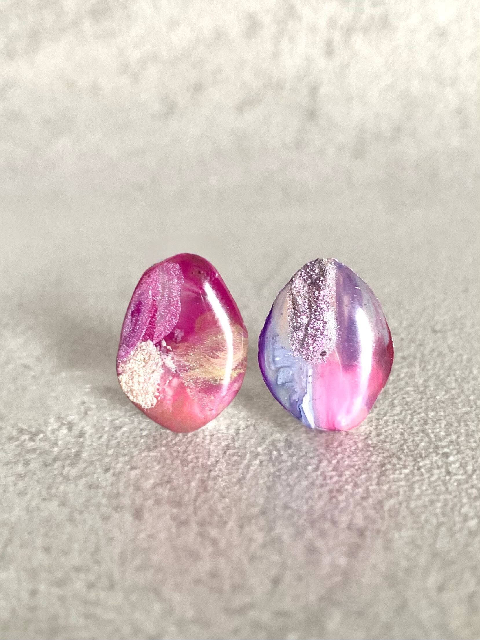 個性的で渋いニュアンスが魅力のアートアクセサリー。色んな色合いや模様が混じり合ったデザインは、他にはない個性を引き立てます。一点一点手作りされているので、世界でたった一つのアクセサリーを手に入れることができます。