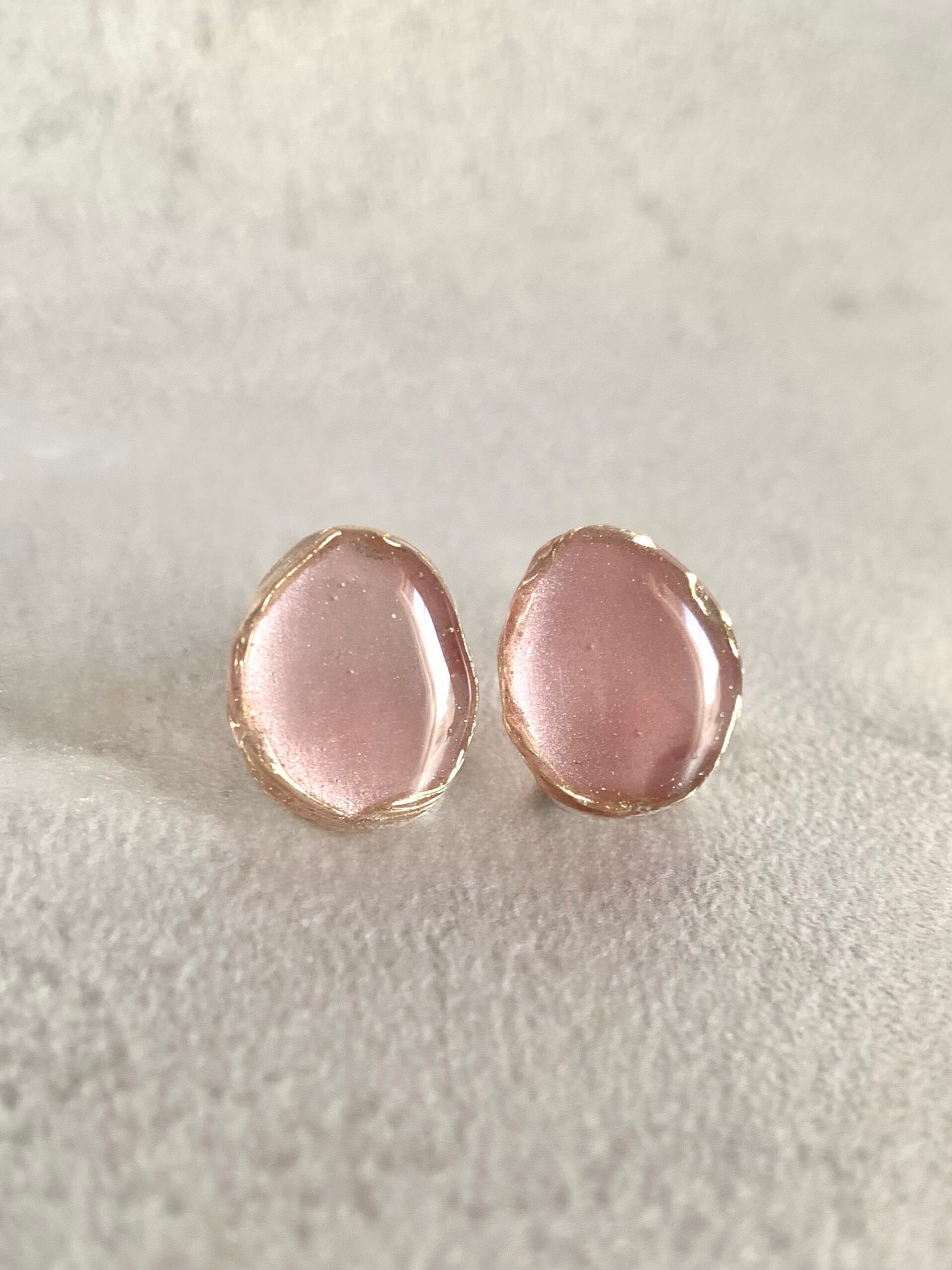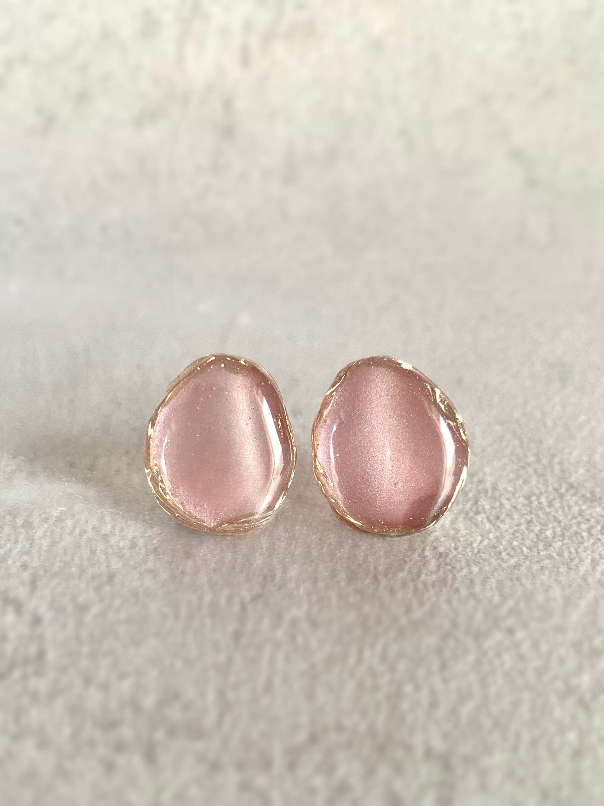 『メープルローズ』ピアスは、シンプルなデザインながらも上品さを演出するアクセサリーです。少しのオレンジ味のあるピンク色が女性らしさを引き立て、さりげない輝きを放つマグネットの粒子がアクセントとなっています。